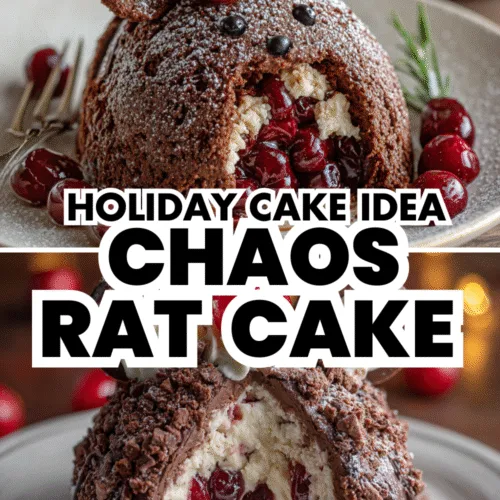 Festive chocolate cherry cake, sculpted into a playful rat shape—perfect for holidays, birthdays, and whimsical family celebrations!